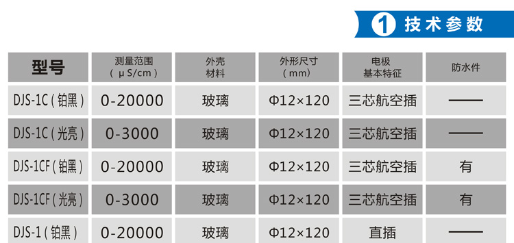 上海雷磁DJS-1CF(光亮/鉑黑)電導電極(三芯航空插/防水)產品介紹