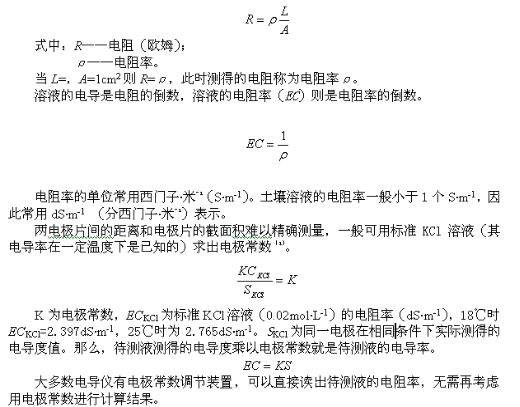 如果土壤溶液中幾種鹽類彼此間的比值比較固定時(shí),則用電導(dǎo)率值測(cè)定總鹽分濃度的高低是相當(dāng)準(zhǔn)確的。土壤浸出液的電導(dǎo)率可用電導(dǎo)儀測(cè)定,并可直接用電導(dǎo)率的數(shù)值來(lái)表示土壤含鹽量的高低。