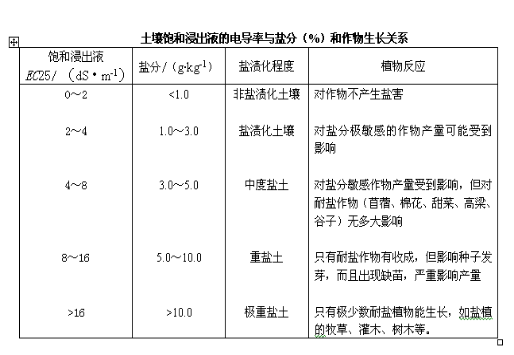 可以作為確定鹽漬土類型和鹽漬化程度的依據(jù),對(duì)于改良鹽漬土具有重要意義。在使用此數(shù)據(jù)確定各項(xiàng)指標(biāo)時(shí),地區(qū)性很強(qiáng),應(yīng)結(jié)合土壤類型、質(zhì)地、土層結(jié)構(gòu)、排水性、氣候、作物等情況綜合考慮。#p#分頁(yè)標(biāo)題#e#